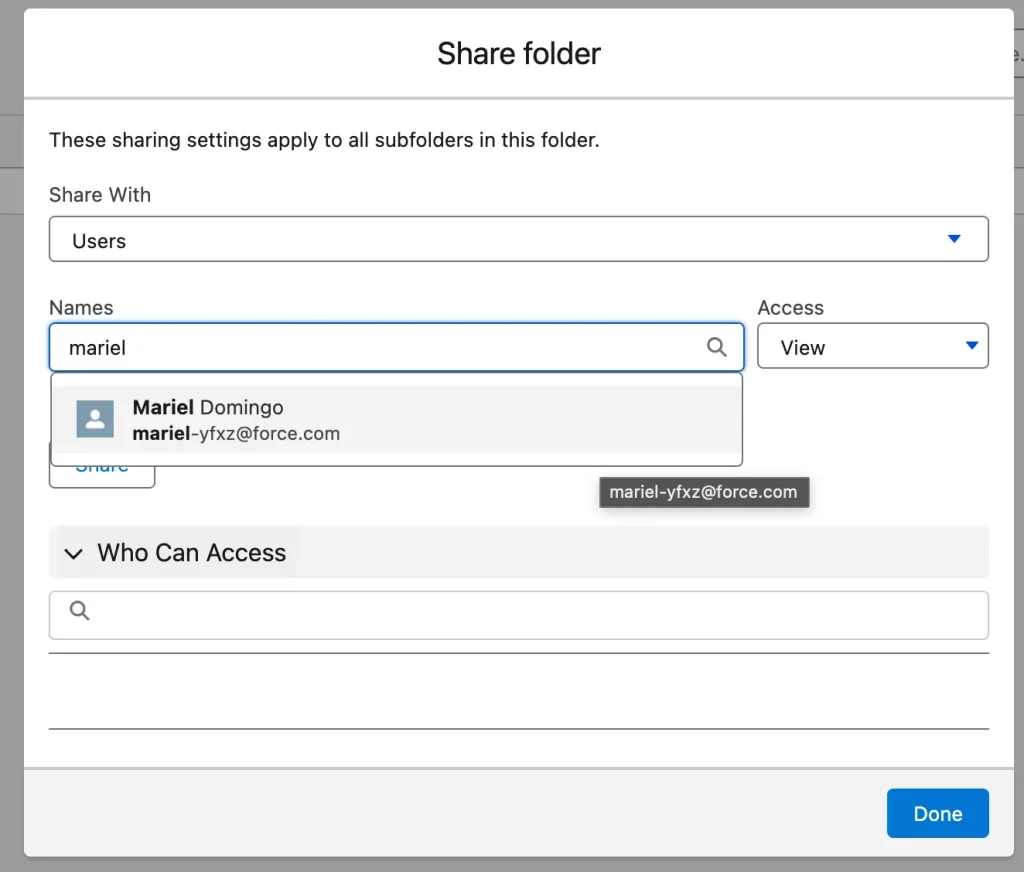 Securely share report and dashboard folders using precise usernames. Search for users by their usernames, and reduce the risk of sharing sensitive information with the wrong users. Previously, only the name was shown, so two instances of “Jane Doe”, for example, would make you guess which of them is the accurate one. Now, you can differentiate because the username is displayed.