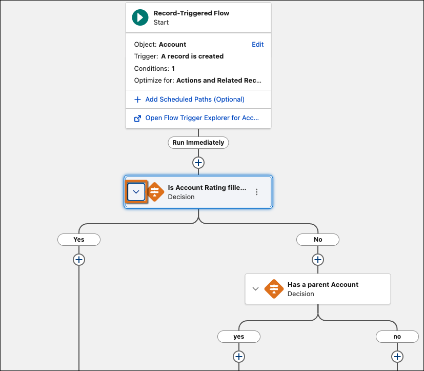 Manage complex flows more efficiently by hiding unnecessary detail on the canvas. Now you can collapse and expand branching elements with Flow Builder, including Wait, Decision, Loop, Path Experiment, and Async Actions, helping you focus on the key parts of your flow. To ensure a consistent workflow, Flow Builder remembers your specific expand and collapse preferences. This layout is saved automatically and locally in your browser, making it easier to return to your work without changing the view for other users.